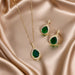 Water Drop Green Zircon Micro-Paved Necklace And Earrings Set, Light Luxury, Personalized Temperament Earrings And Necklace Combination